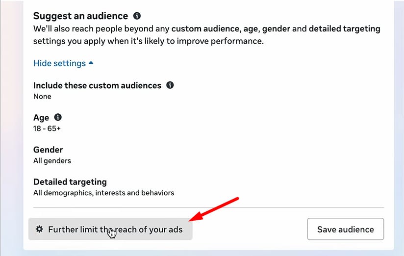 Meta’s AI is smart, but sometimes you need hard boundaries. Deselect "Use a suggestion" to enforce strict age or gender limits.